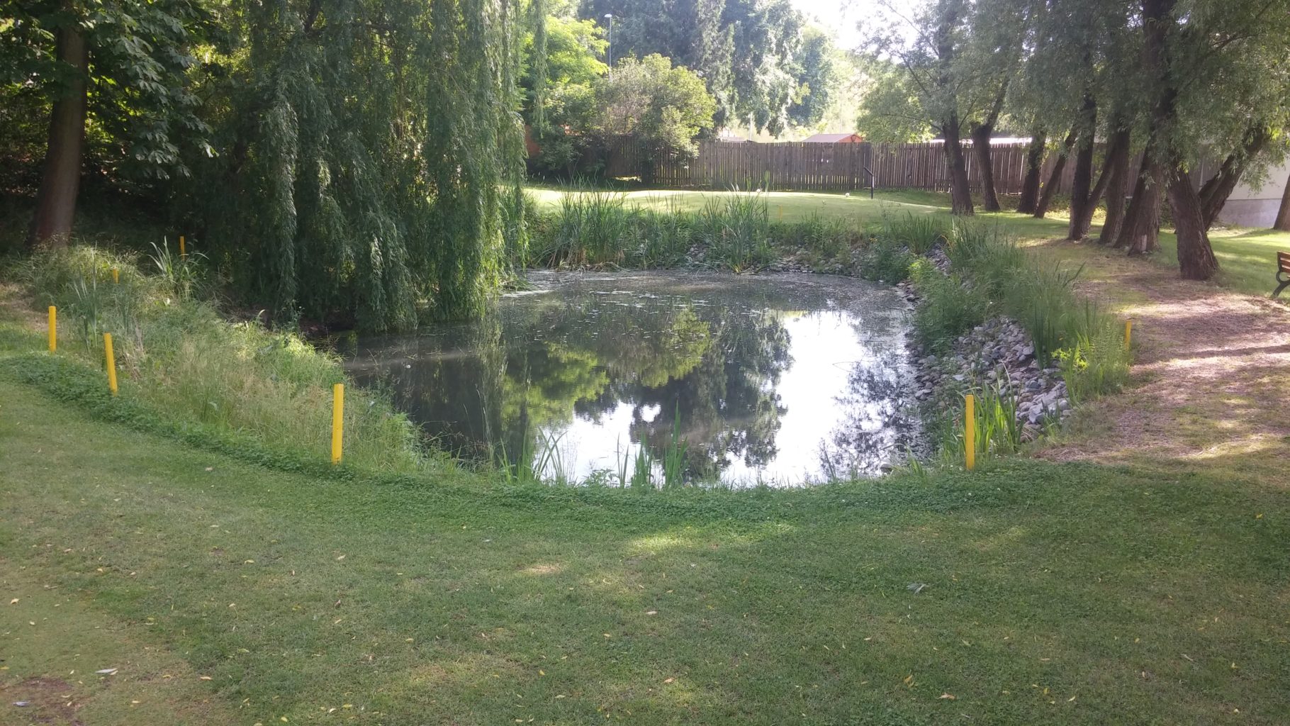 V areálu najdete i 3 pískové bunkery a rybníček, takže si můžete nacvičit i odpal z písku a trochu adrenalinu přes vodu.